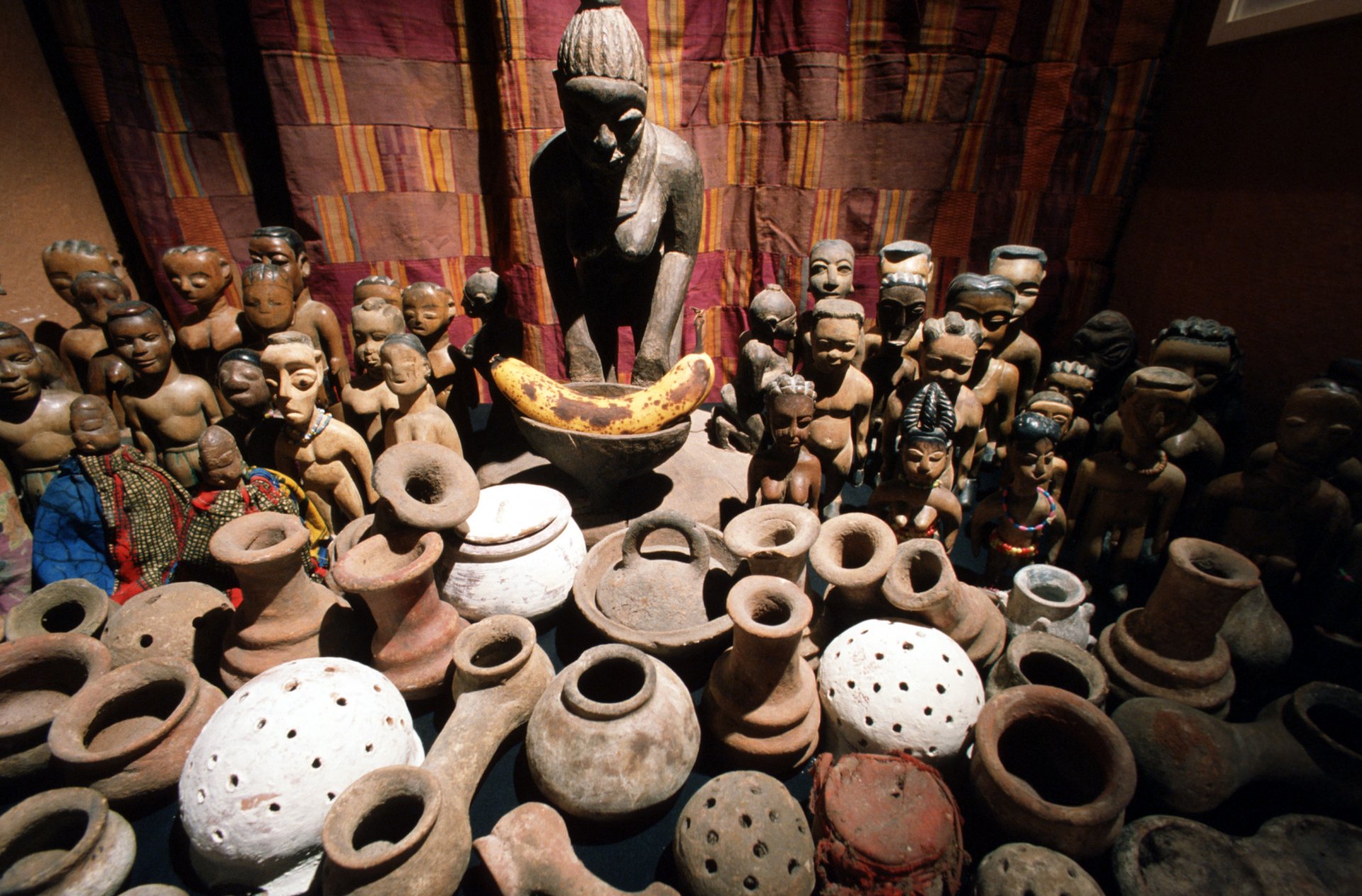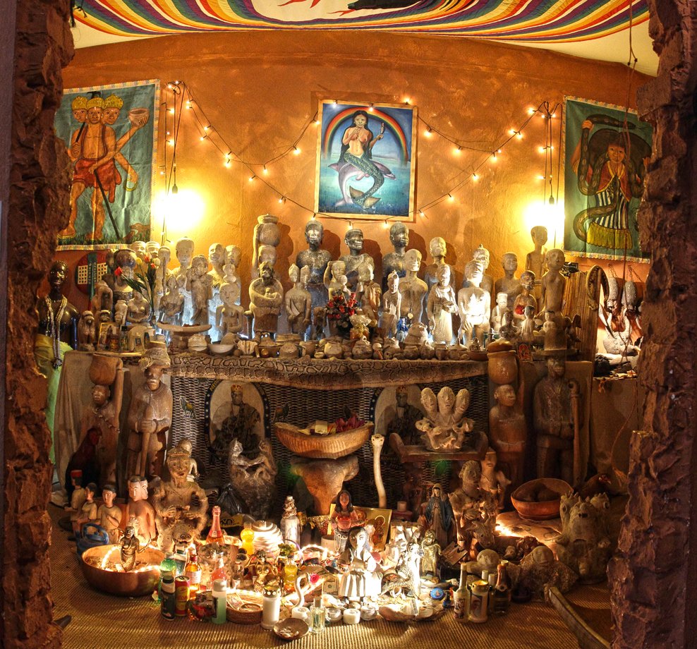 The shrine has 100 small Mami Wata figures on it.