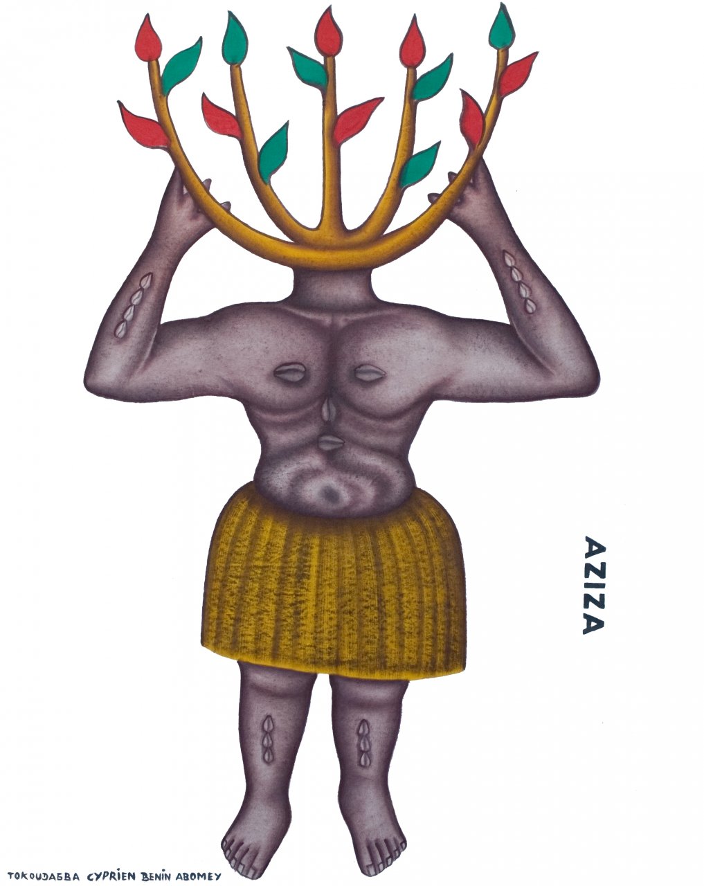 Painting by Cyprien Tokoudagba, Aziza the vodun god of the forest Abomey, Benin