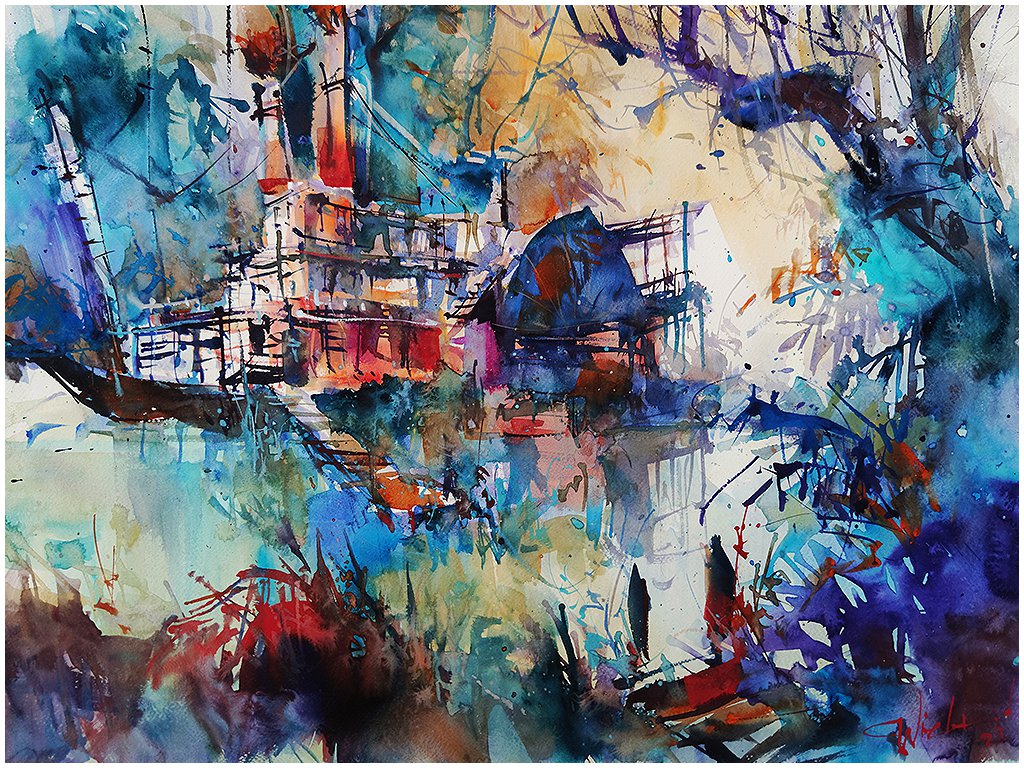 Fine Art Pigment Print under Acrylic Glass Acquarelli Luminosi #17 The old steamboat - Carsten Wieland 2024 Open Edition Watercolor Art https://www.etsy.com/de/listing/1679250361 - Carsten Wieland