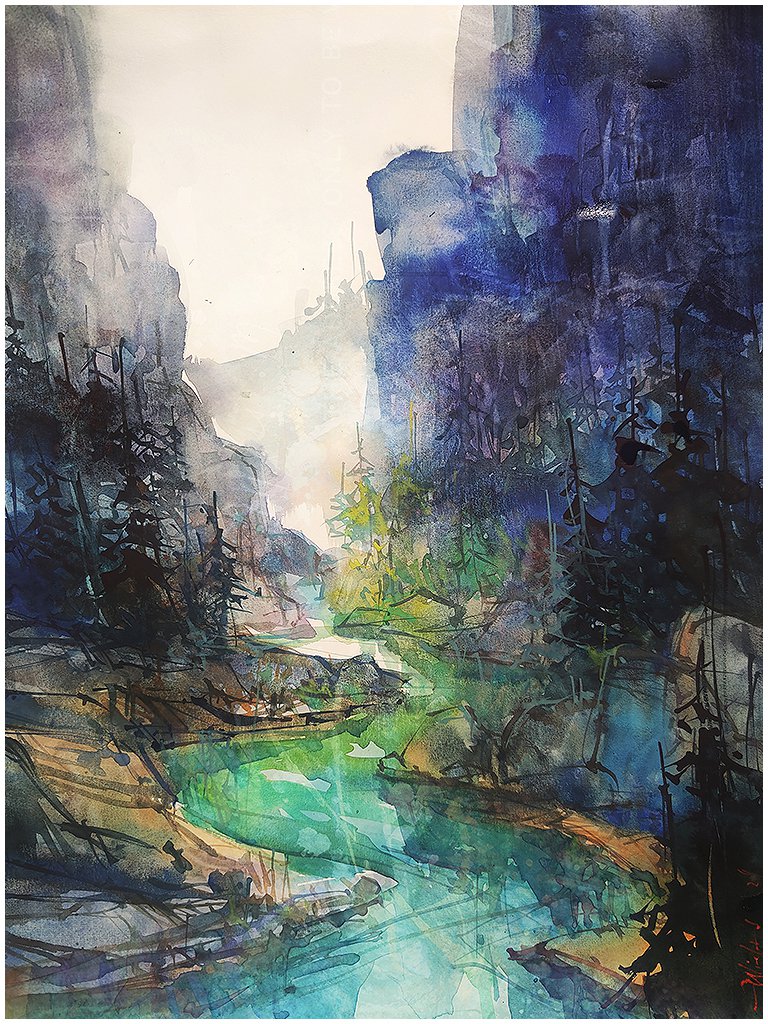 Fine Art Pigment Print under Acrylic Glass Acquarelli Luminosi #16 The gorge (...from my dreams) - Carsten Wieland 2024 Open Edition Watercolor Art https://www.etsy.com/de/listing/1665081238 - Carsten Wieland