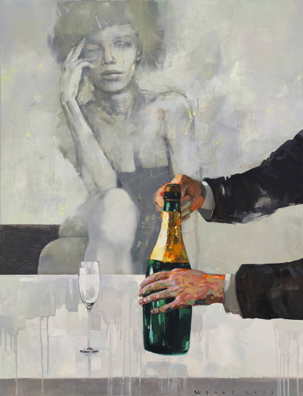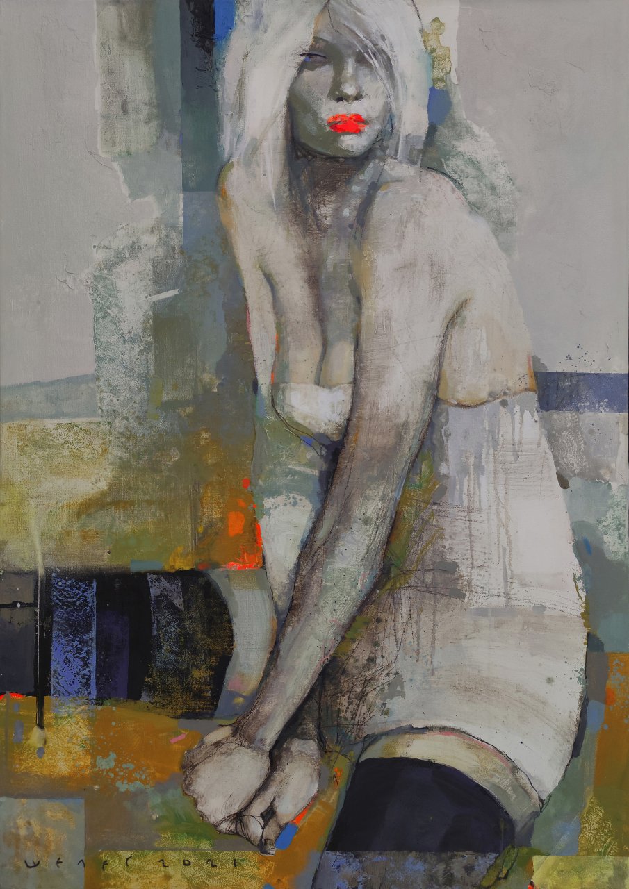 The painting is sold complete with a frame and stretcher and is ready to hang. Delivered in a rigid box. The painting can also be bought without a frame and stretcher. Only canvas is delivered in a tube.