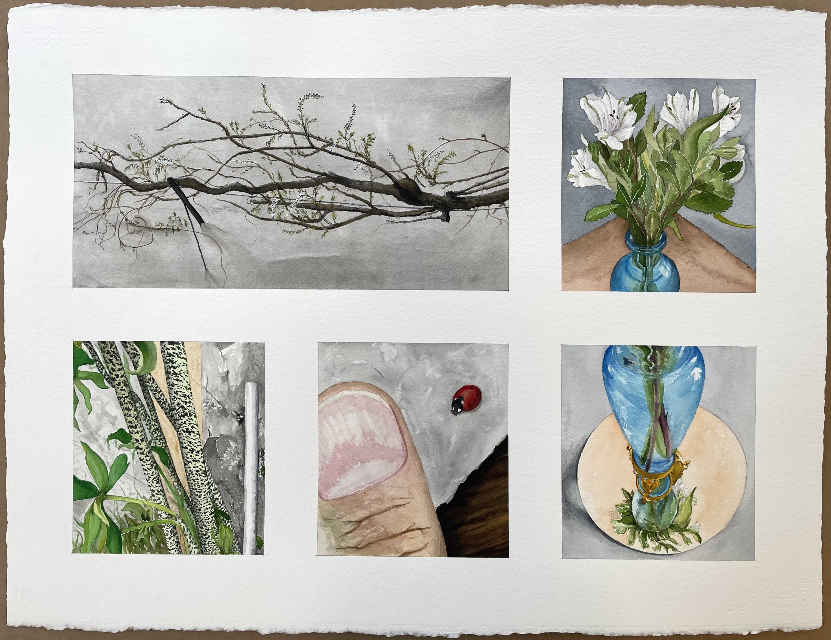 Untitled (Wisteria, Lilies, Dracunculus Vulgaris, Ladybug and a Thumb) - Peter Root