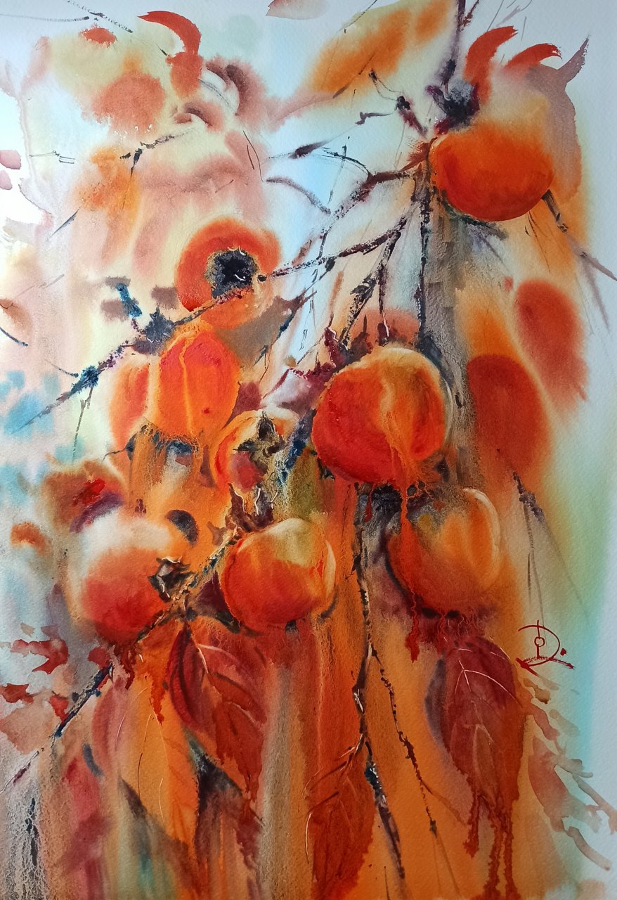 EXCELLENCE AWARD 2023 Winner: Olga Drozdova, Italy Persimmons2022 38x56cm - DoYouSpeakWatercolor?